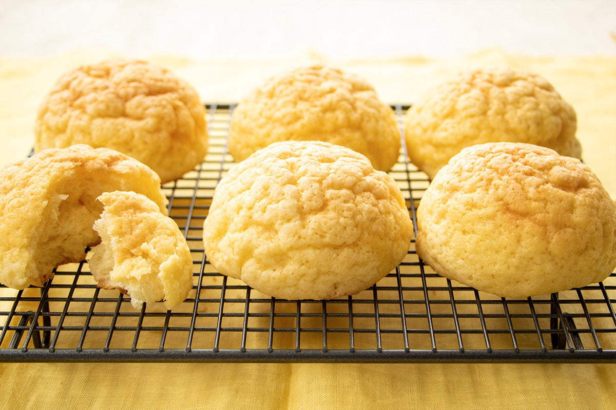 菓子パン人気No.1のメロンパンは、トースターで温めると発酵バターの香りが部屋いっぱいに広がり、クッキー生地のカリッと食感とパンのふわふわ食感がたまりません。昔から愛されてきた懐かしさ残しつつ、厳選した材料を使用することで発酵バターとミルクの香りが口の中いっぱいに広がり、贅沢な気分を味わえます。
