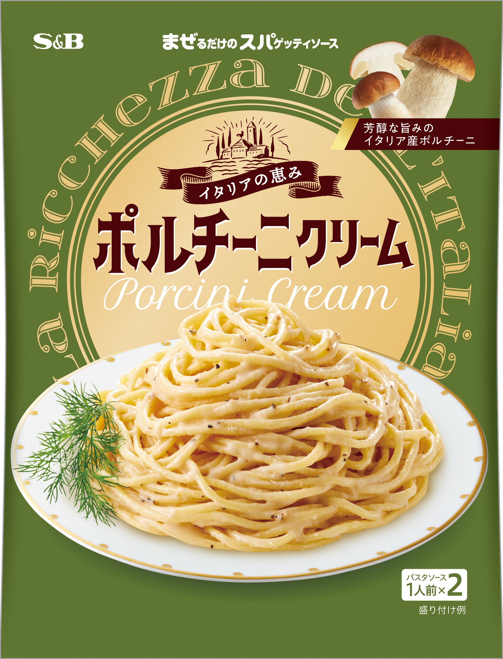 エスビー食品株式会社は、イタリア産食材の味わいを手軽に楽しめる「まぜるだけのスパゲッティソース イタリアの恵み」シリーズから、豊かな香りと旨みが特徴のイタリア産ポルチーニを使用した「ポルチーニクリーム」を新発売します。