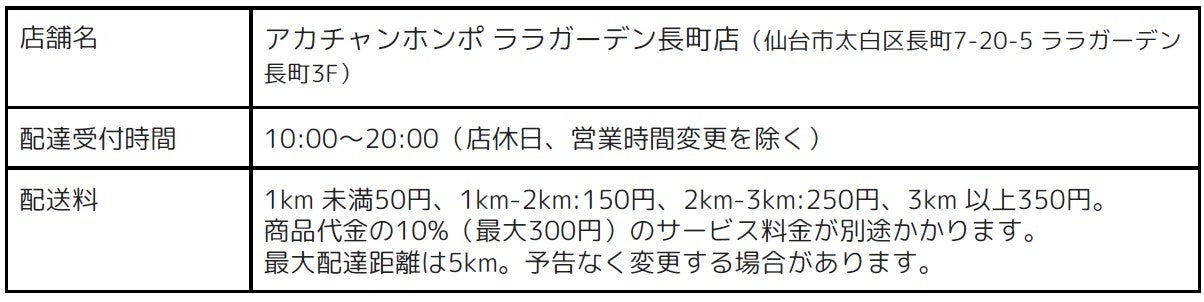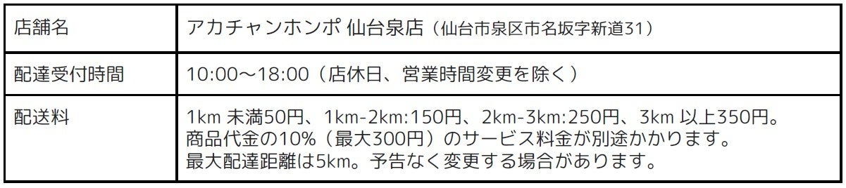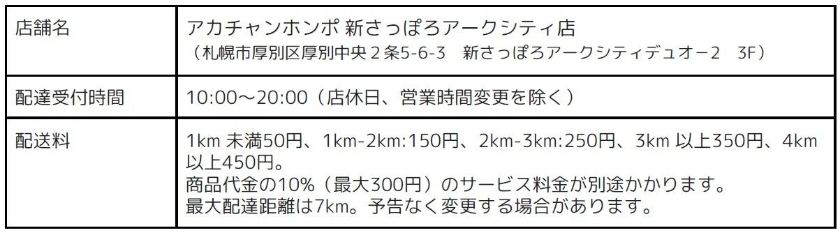 デリバリーサービス「Wolt(ウォルト)」を展開するWolt Japan株式会社は、このたび 「株式会社赤ちゃん本舗(本社:大阪市中央区)」と提携し、2022年8月4日(木)より札幌、仙台、広島の「アカチャンホンポ」計4店舗にてデリバリーサービスをスタートいたします。Woltがベビー用品の専門店と取り組みを開始するのは今回が初となります。サービス開始を記念して、2022年8月4日(木)〜8月31日(水)まで期間限定キャンペーンを実施します。