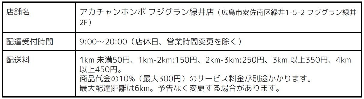 デリバリーサービス「Wolt(ウォルト)」を展開するWolt Japan株式会社は、このたび 「株式会社赤ちゃん本舗(本社:大阪市中央区)」と提携し、2022年8月4日(木)より札幌、仙台、広島の「アカチャンホンポ」計4店舗にてデリバリーサービスをスタートいたします。Woltがベビー用品の専門店と取り組みを開始するのは今回が初となります。サービス開始を記念して、2022年8月4日(木)〜8月31日(水)まで期間限定キャンペーンを実施します。