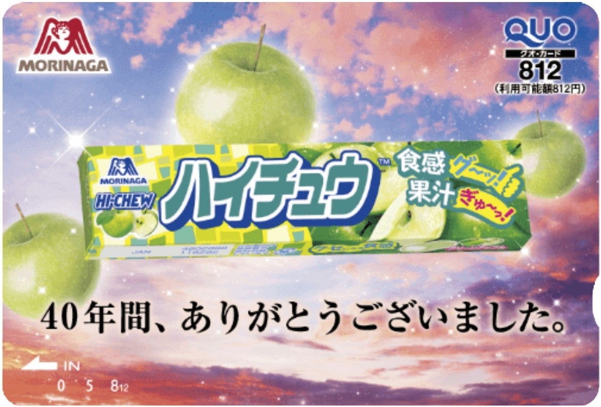また、特設サイトの公開に併せて、「12粒ハイチュウ」の購入レシートで応募できる「さようなら、グリーンアップルキャンペーン」を開催します。生産終了した「12粒ハイチュウ<グリーンアップル>」12本セットを抽選でプレゼントするほか、応募した方全員に杉田さん演じるグリーンアップルの甘酸っぱいお別れボイスもプレゼントする、という豪華な内容になっています。さらに、森永製菓公式Twitter上にて、生産終了するグリーンアップルが大きくデザインされたオリジナルQUOカード812円分が当たるキャンペーンも実施します。これらのキャンペーン情報が掲載されている特設サイトでは、Web動画の中では伝えることができなかった、グリーンアップルからのメッセージ全文も掲載されています。ぜひ、ご覧になってください。