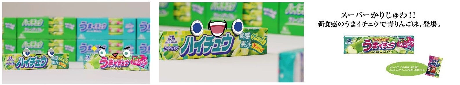 1982年に発売し、長きに渡りご愛顧いただいた「12粒ハイチュウ<グリーンアップル>」は、スティックタイプ「ハイチュウ」のラインアップ刷新のため、2022年7月生産分もって販売終了することとなりました。青りんごの爽やかな味わいは、カリカリっとした食感とじゅわ~と味わいが広がる「うまイチュウ<青りんご味>」が引き継いでまいります。ぜひ「うまイチュウ」もお試しください。また、グリーンアップルについては、引き続きアソートタイプでお楽しみいただけます。