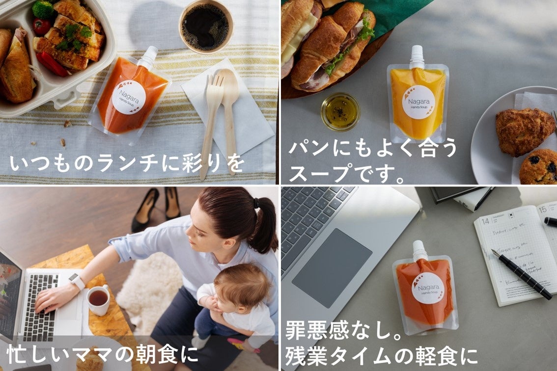 株式会社Taste and Logic(本社:東京都練馬区、代表取締役:原賀 健史)は、飲み口付パウチに、有名ホテル出身のシェフ監修の本格冷製スープを詰めた「Nagara ハンディスープ」を、自社ECサイトにて販売開始いたしました。