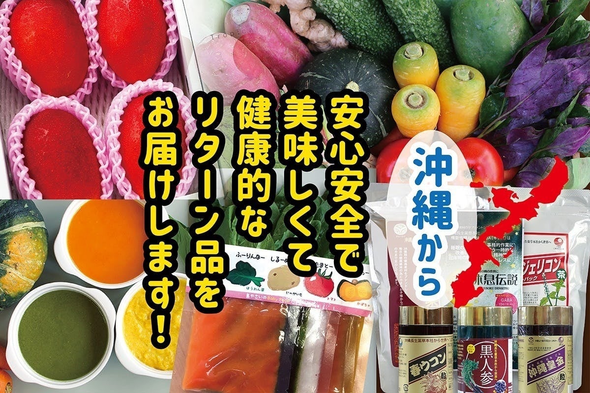 「沖縄を感じられるもの」として、オリジナルの「島野菜離乳食」や、ご家族みんなで召し上がっていただける「野菜スープ」に加え、「沖縄産フルーツや島野菜」の他、「県産薬草のサプリ」など色々ご用意させて頂いています。
