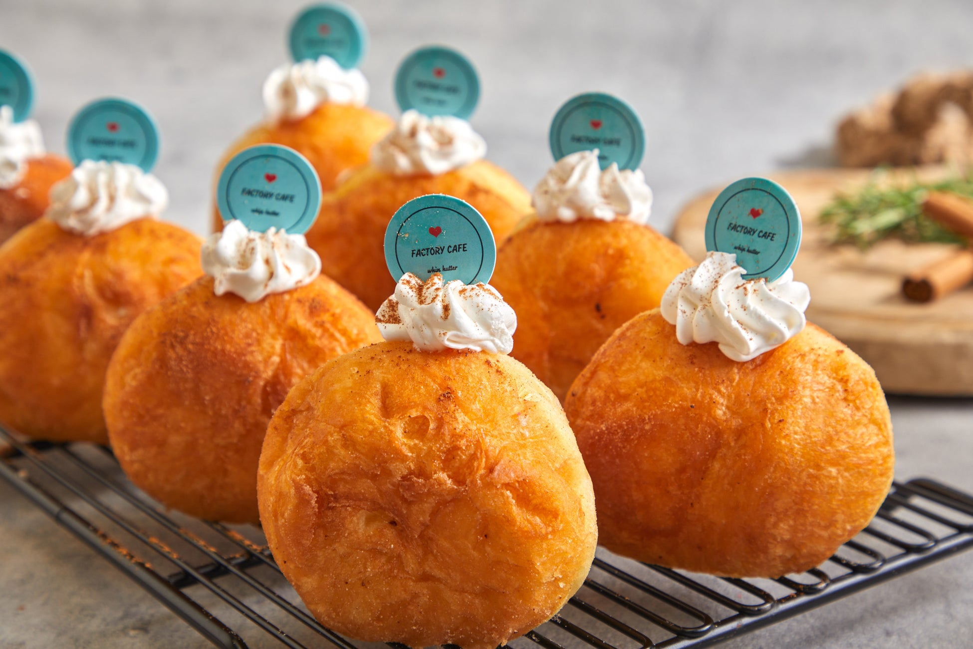 さらに、ファクトリーカフェではこのボンボローニにシナモンやクローブなどの様々なスパイスでアクセントを加え、ここでしか食べることが出来ないオリジナルスイーツ(パン)に仕上げております。