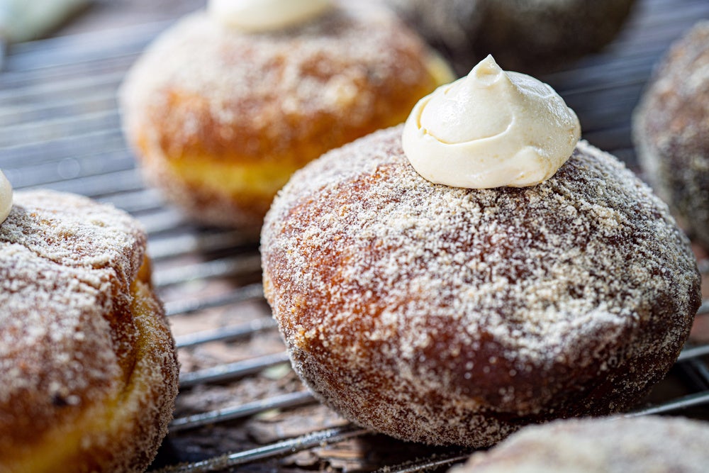 ボンボローニ(Bombolone)とは、イタリア・トスカーナ生まれの郷土菓子。発酵ドーナツ生地を揚げたものにカスタードクリームやチョコレートクリームをたっぷりと詰め、砂糖をまぶして仕上げたもののことです。イタリアではおやつ代わりに昔から愛されている伝統的なスイーツです。