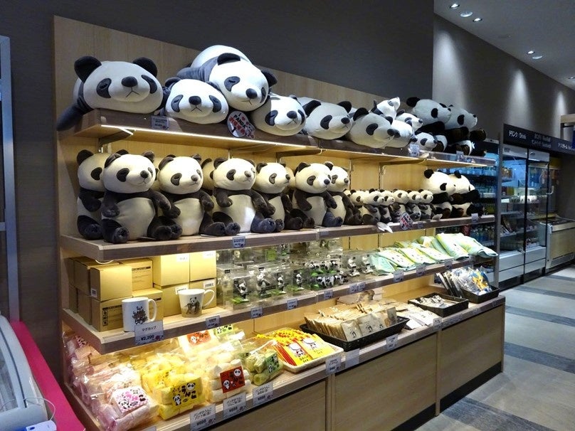 パンダコーナーを設けたり、パンダをデザインした商品を多数取り揃えたりしたのは、南紀白浜アドベンチャーワールドのパンダに岸和田市産の竹の葉を提供しているため。『御馳走食堂』の店頭では、アドベンチャーワールドのパンダが竹を食べる映像が流れ、エントランスでは高さ2メートルの「Welcomeジャイアントパンダ人形」が来客を出迎えます。