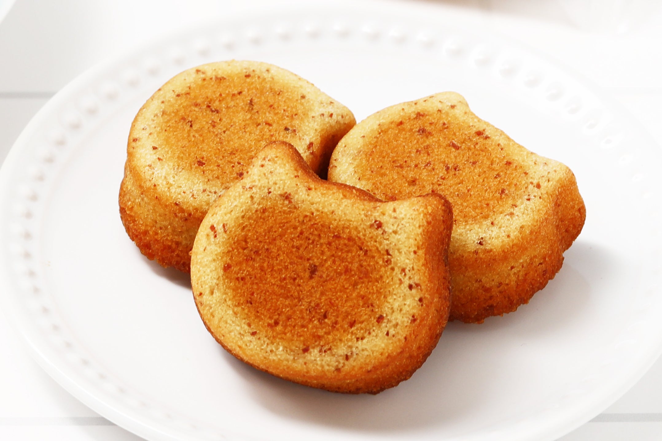 ティータイムのお供にぴったりな可愛いねこの形のフィナンシェ。しっとりとした食感とバターの豊かな香りをお楽しみいただけます。皮つきのアーモンドプードルときび砂糖を使用することにより、コクと香りをよりお楽しみいただけるよう仕上げました。