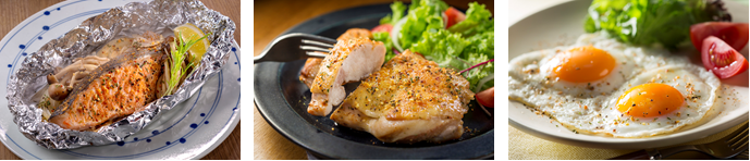 肉、魚介、卵、野菜など、色々な食材への味付けがこれ1本でできます。鮭のホイル焼き、チキンソテー、目玉焼きなどがおすすめです。またマヨネーズやポン酢など普段お使いの調味料と合わせることで、いつもの料理をより華やかにおいしくお召し上がりいただけます。
