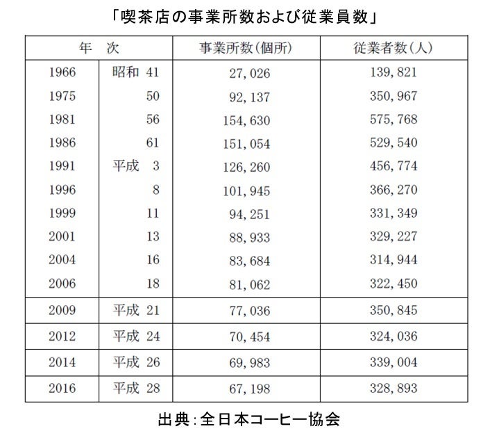 全国の喫茶店は1981年の154,630軒をピークに減少しており、2016年時点では67,198軒と約半分となっています。このような背景から、当社は喫茶文化の継承を目的とした活動を強化し、昨年純喫茶の総合サイト「純喫茶ジャーニー」を立ち上げました。URL:https://www.junkissa-journey.com/