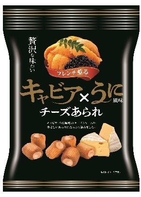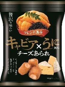 既に発売済みで販売好調な「塩トリュフ風味チーズあられ」の第2弾。クリームチーズを使用した贅沢なおつまみです。チーズクリームにキャビア風味とうにパウダーをブレンドしたまろやかさが、フレンチ薫るリッチな味わいを実現しています。