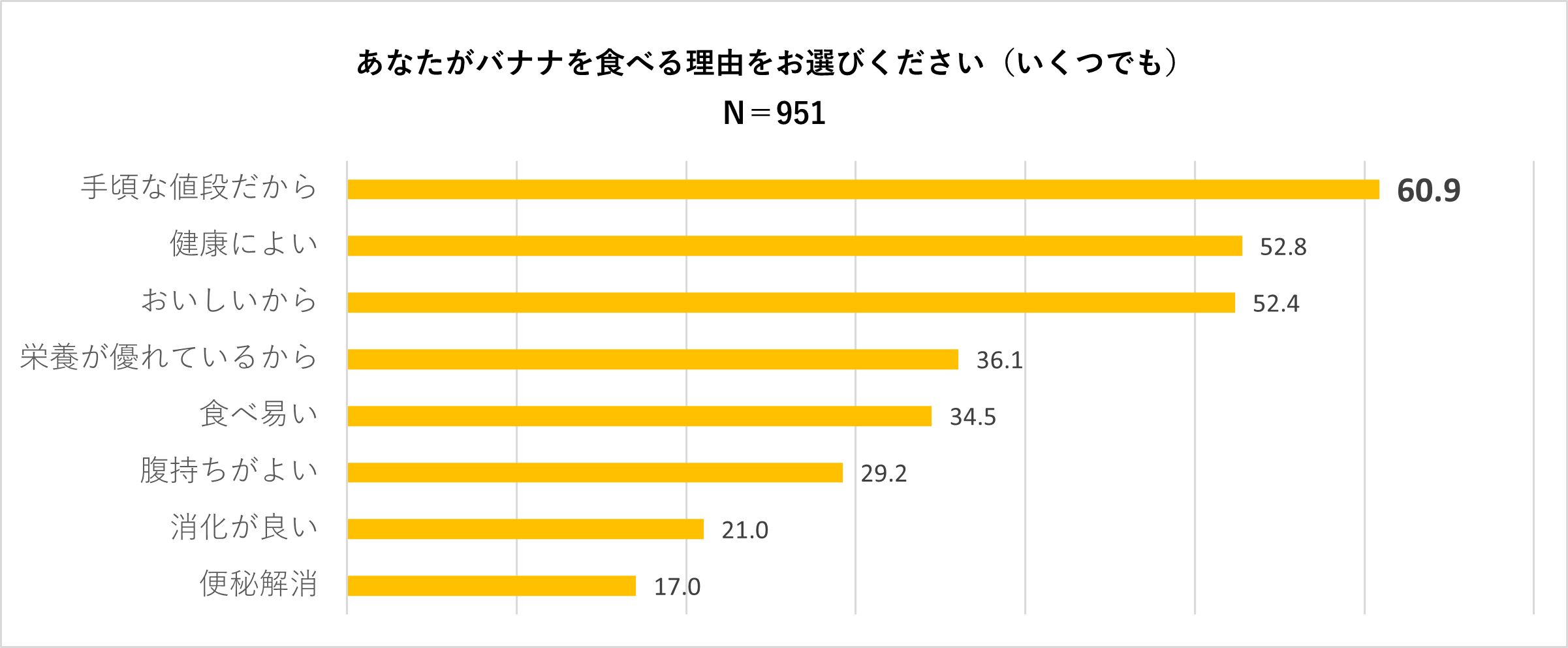 ◆バナナを食べる理由は、「手軽な値段」「健康によい」「おいしい」が上位に!