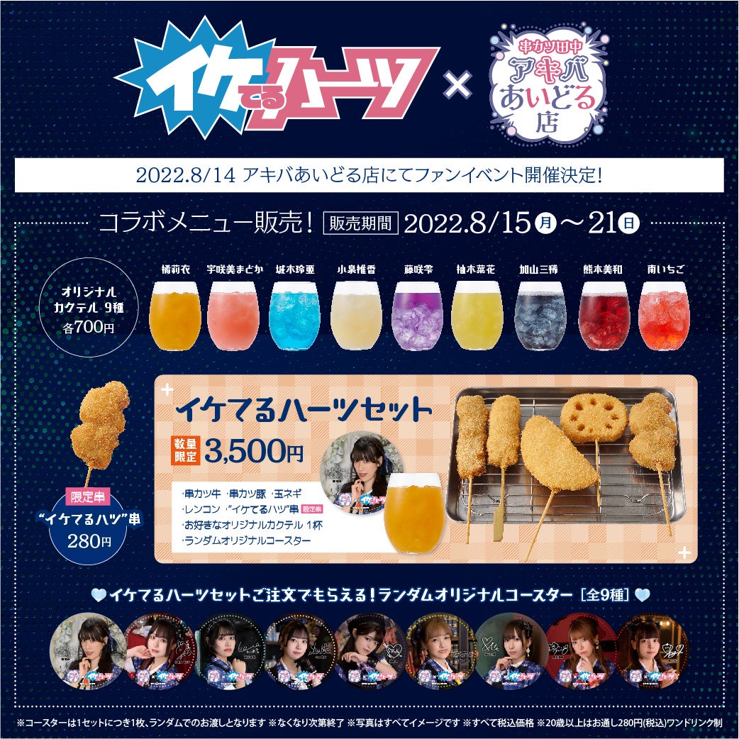 株式会社串カツ田中(本社:東京都品川区東五反田、代表取締役社長:坂本 壽男、以下:串カツ田中)の運営する串カツ田中アキバあいどる店が、アイドルグループ「イケてるハーツ」と2022年8月14日(日)~21日(日)にコラボレーションいたします。