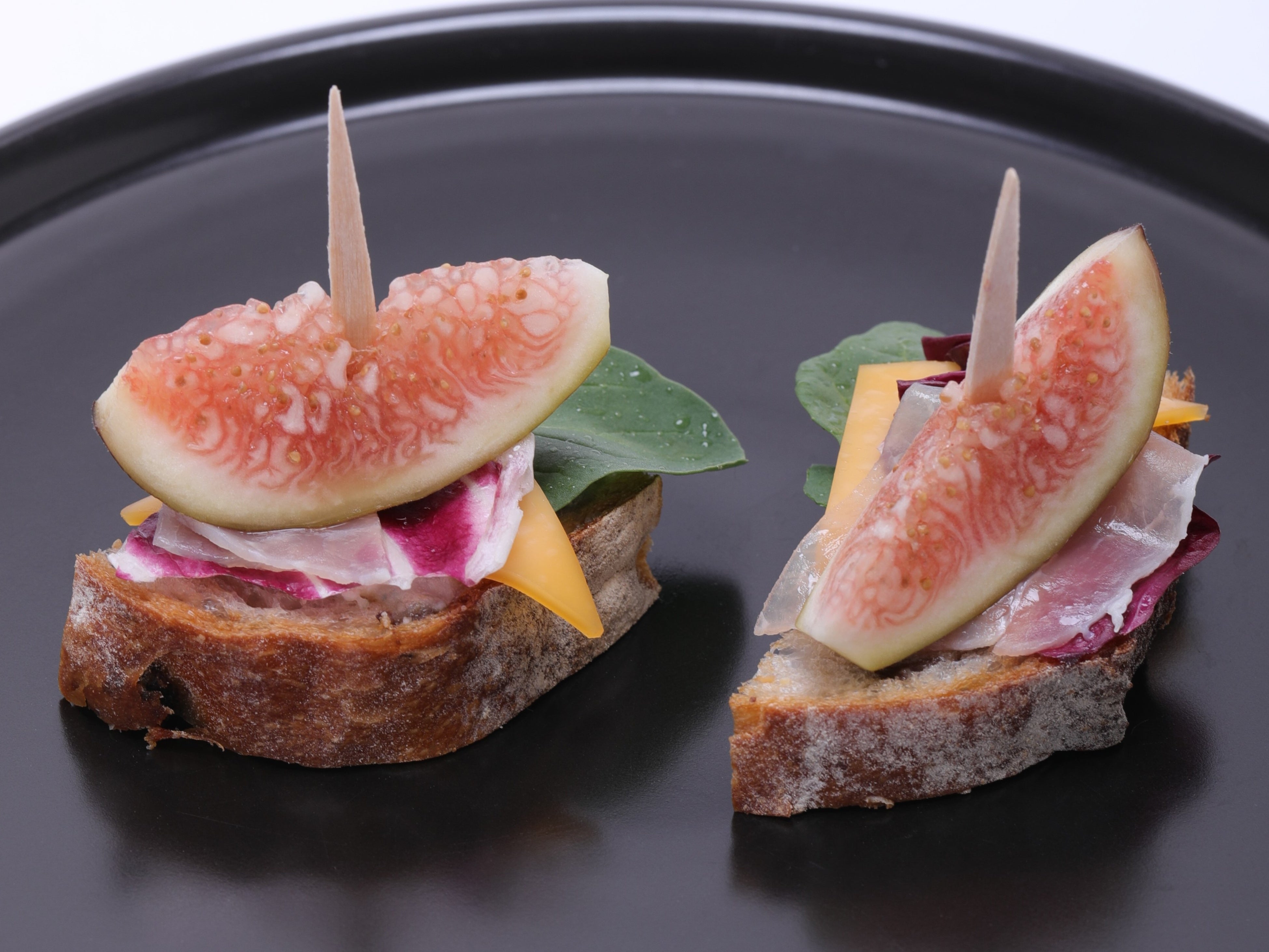 旬のイチジクをゴンゾーラチーズや生ハム、ルッコラなどの具材と一緒に盛り付けたフレンチスタイルのオープンサンド。ハチミツのアクセントが決め手です。