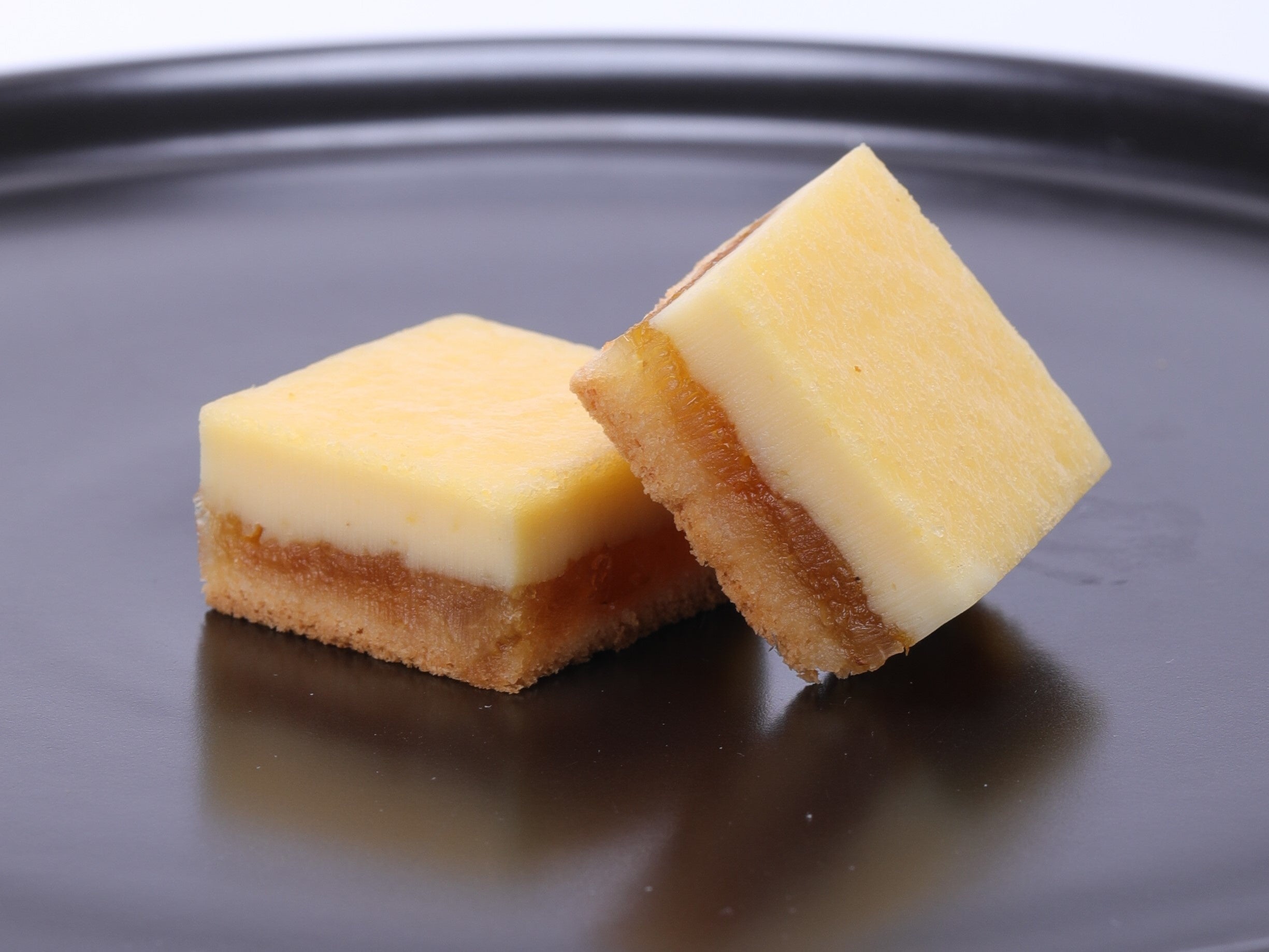 チーズケーキの中に、日本人に親しみのある柚子のコンフィを入れました。口に広がる柚子の華やかな香りと、さっぱりとした味わいを楽しめます。