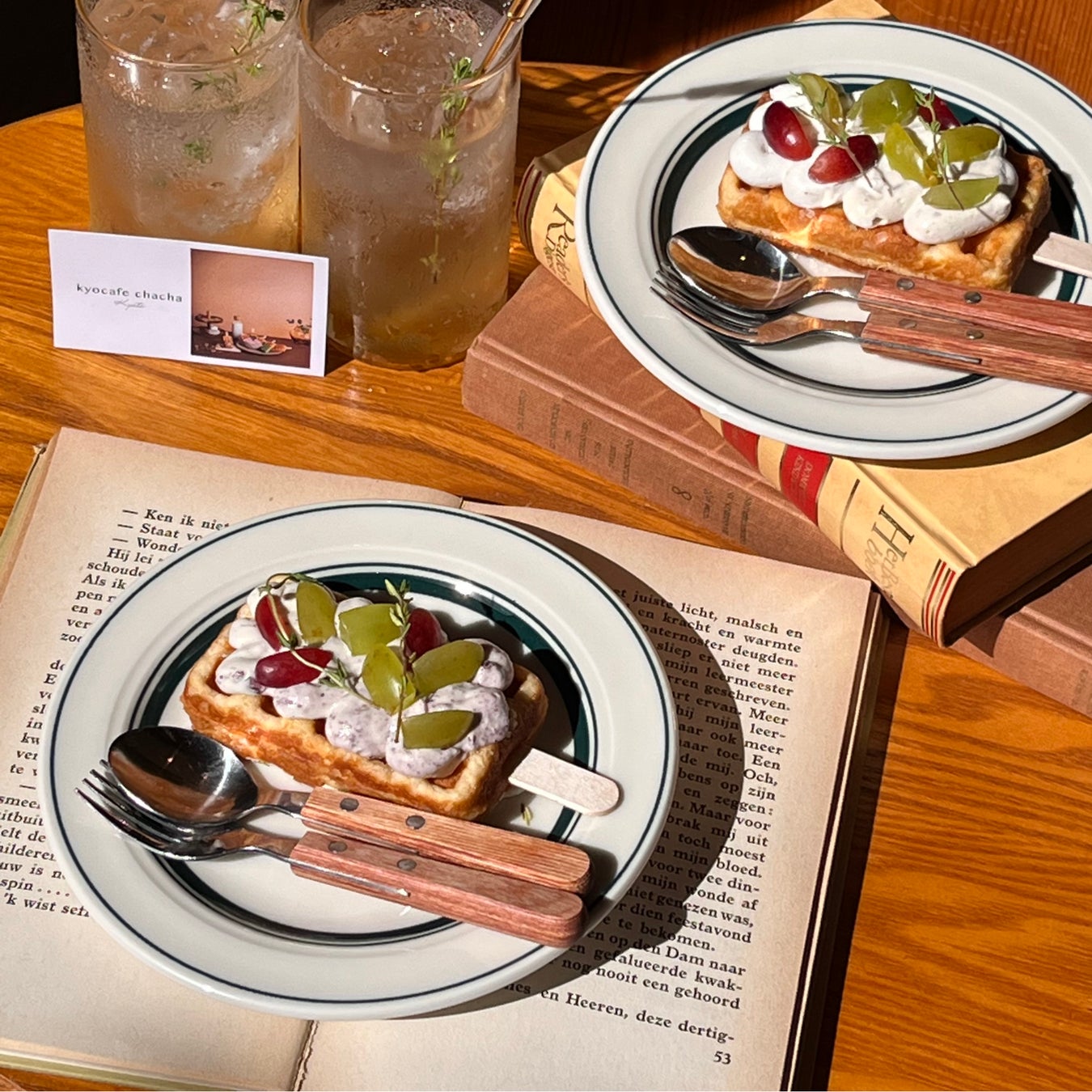 都 嵐山のカフェとして注目されている京ワッフル専門カフェ kyocafe chacha 嵐山店では、2022年8月8日(月)〜9月8日(木)にて、『サマーグレープワッフルプレート』を提供いたします。