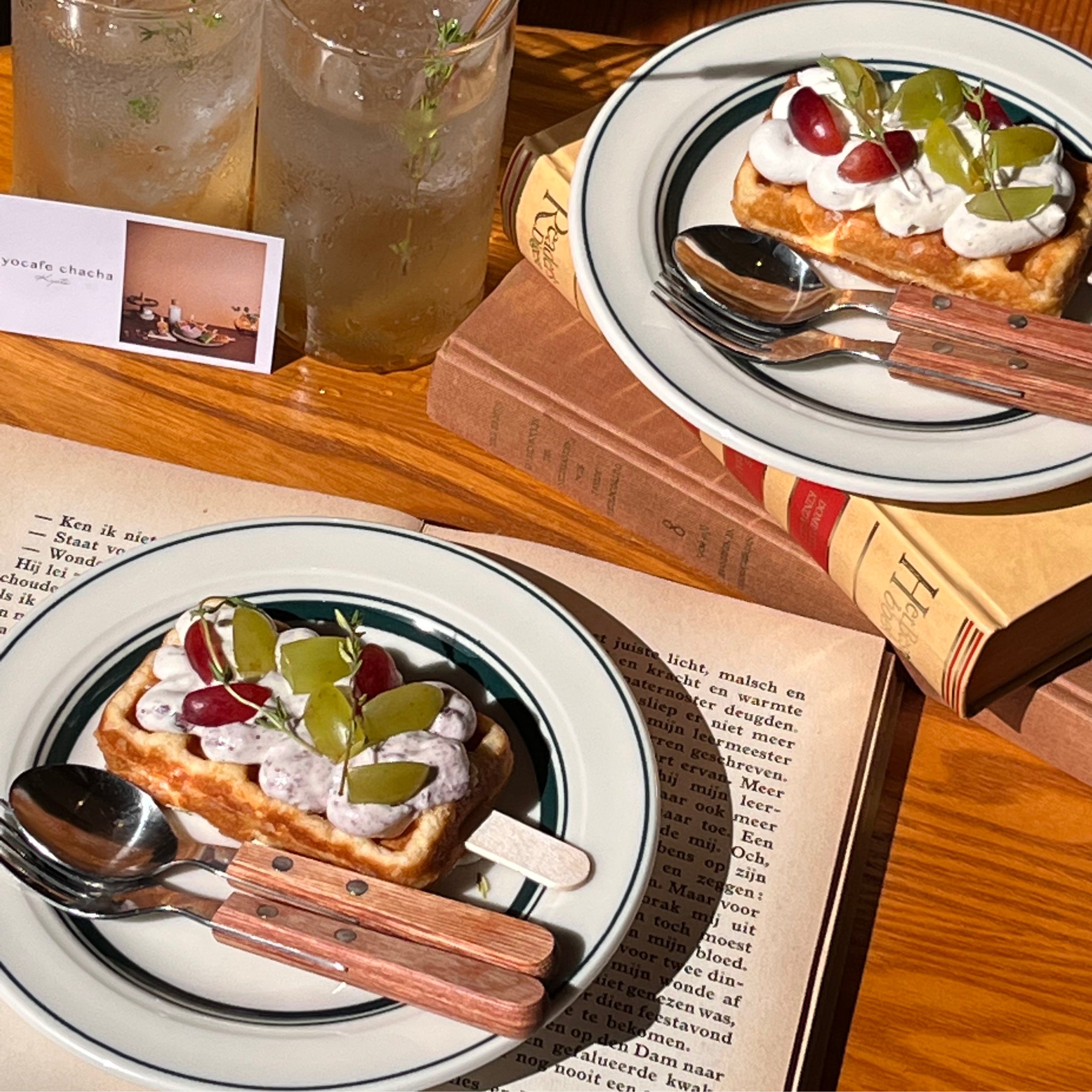 都 嵐山のカフェとして注目されている京ワッフル専門カフェ kyocafe chacha 嵐山店では、2022年8月8日(月)〜9月8日(木)にて、『サマーグレープワッフルプレート』を提供いたします。