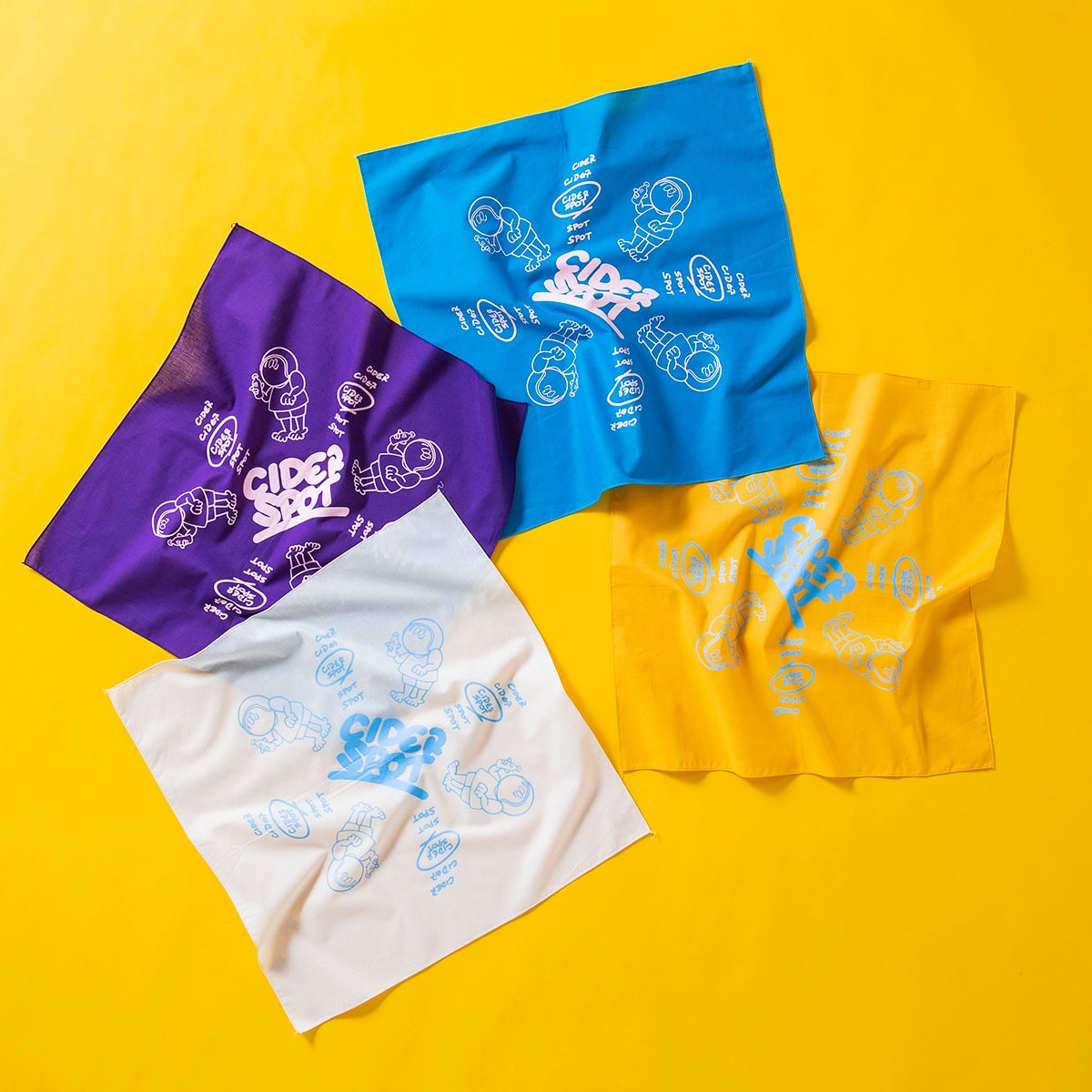CIDER SPOT CIDER BOY BANDANA | ¥1,980(including tax)| BEIGE /YELLOW / BLUE / PURPLE | 50cm × 50cm