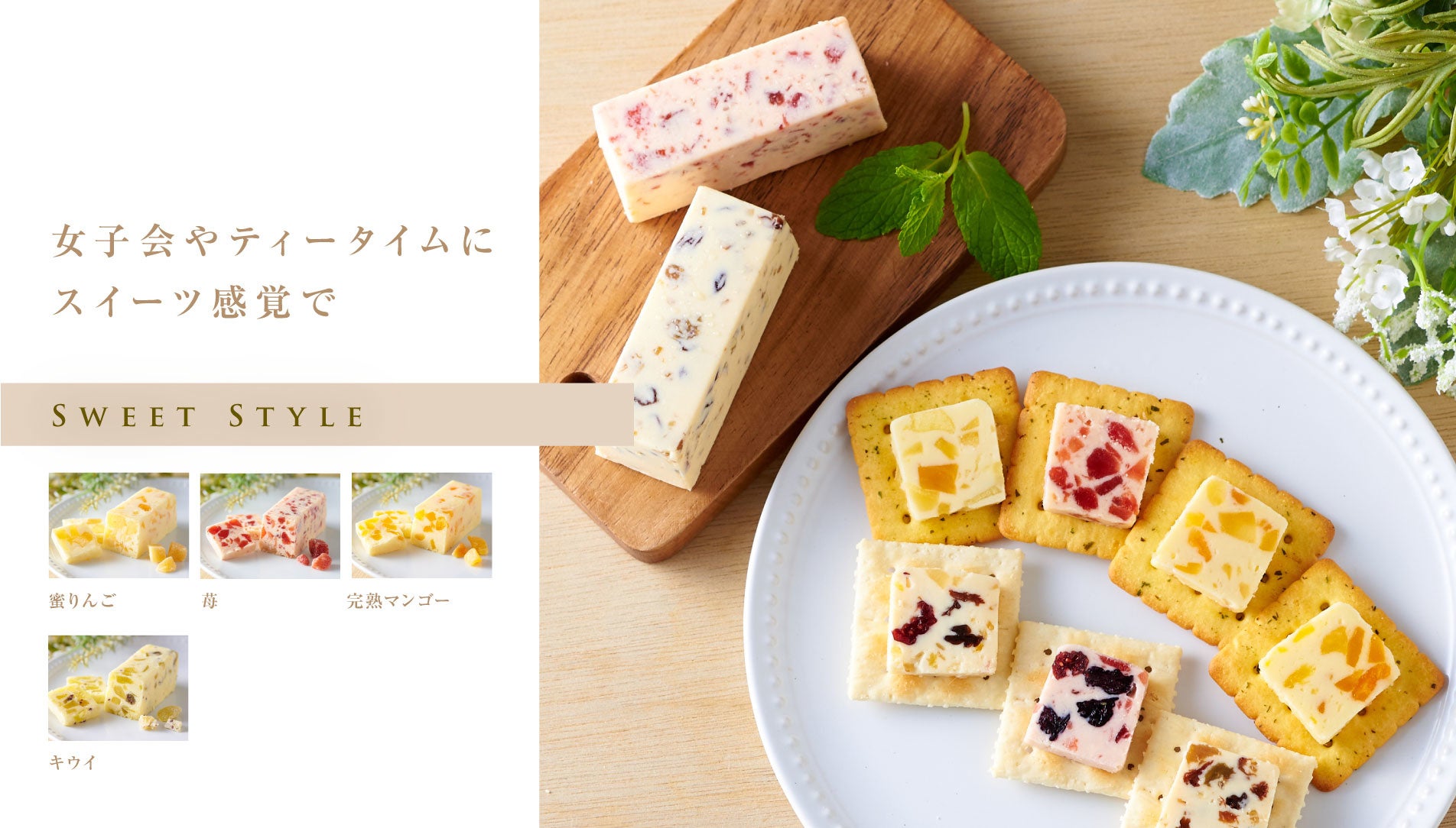 Casual Style同様にバターベースに『リッチバターテイスト』を使用。フルーツ本来の芳醇さに加え、はちみつなどの甘味が調和したスイートなフレーバー。女子会やティータイムにもおすすめのシリーズ。