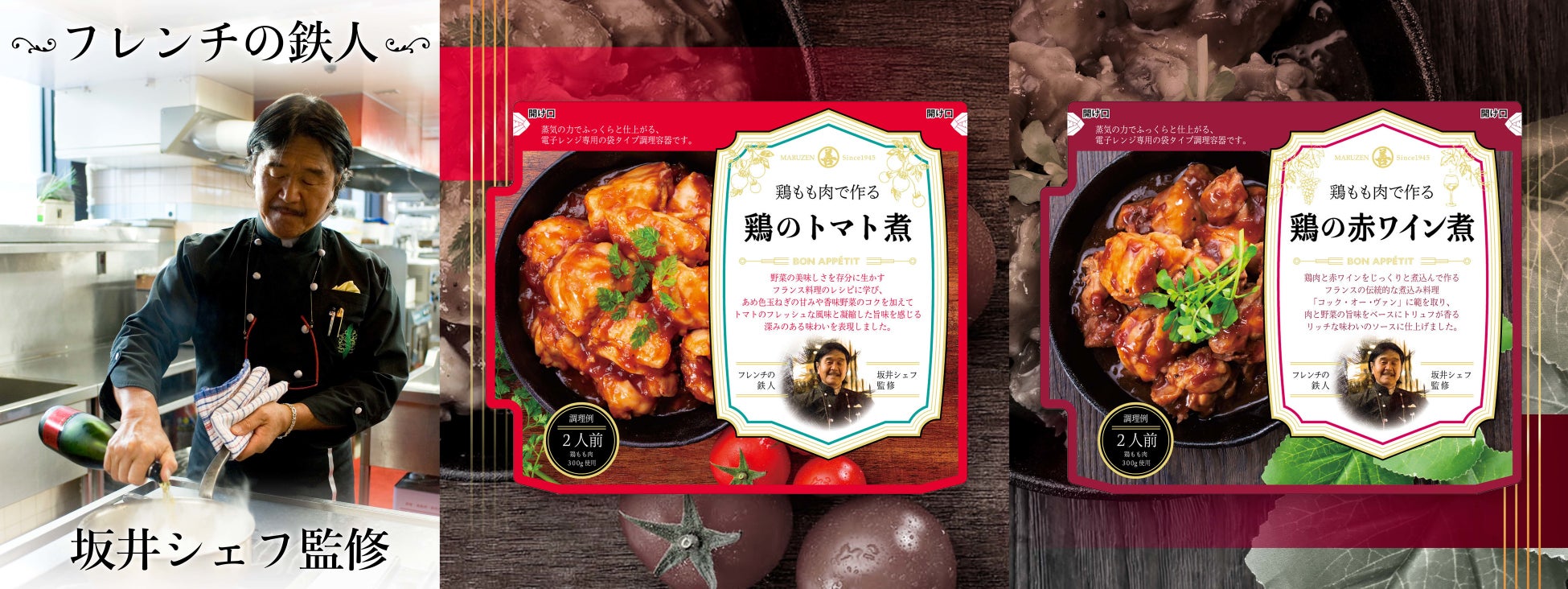 株式会社丸善(本社:東京都台東区、代表取締役社長:原壮太)は、2022年9月5日に「坂井シェフ監修 レンジ調理 鶏のトマト煮」「坂井シェフ監修 レンジ調理 鶏の赤ワイン煮」を新発売いたします。