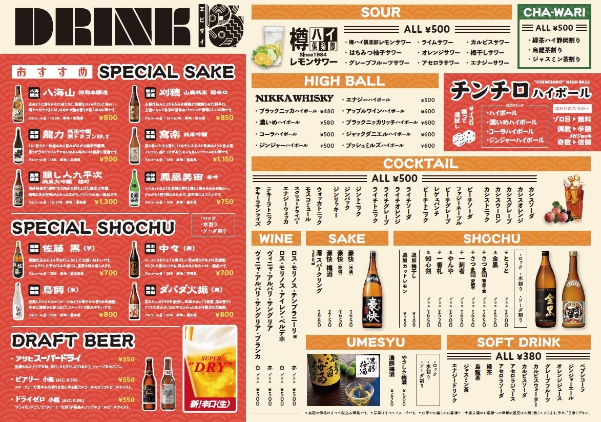 ・お一人様につき、料理1品+ドリンク1品をご注文頂きます。