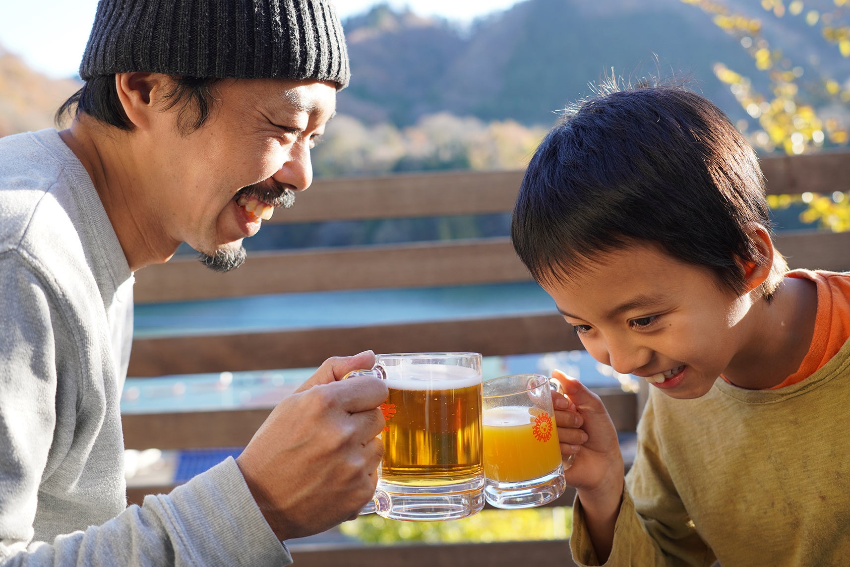 まるでガラスのような透明感でアウトドアでも『グビグビ…プハー!』が楽しめる、子どもとおそろいのプラスチック製ビアマグ。