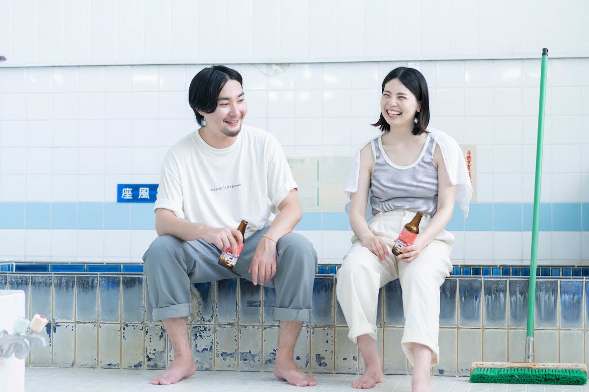 夏に向けた新商品のコンセプトは “湯上がりに飲むと最高に整う”。岩淵町のアイコンであり、戦前から営業している銭湯「岩の湯」をモチーフにラベルをデザインしました。