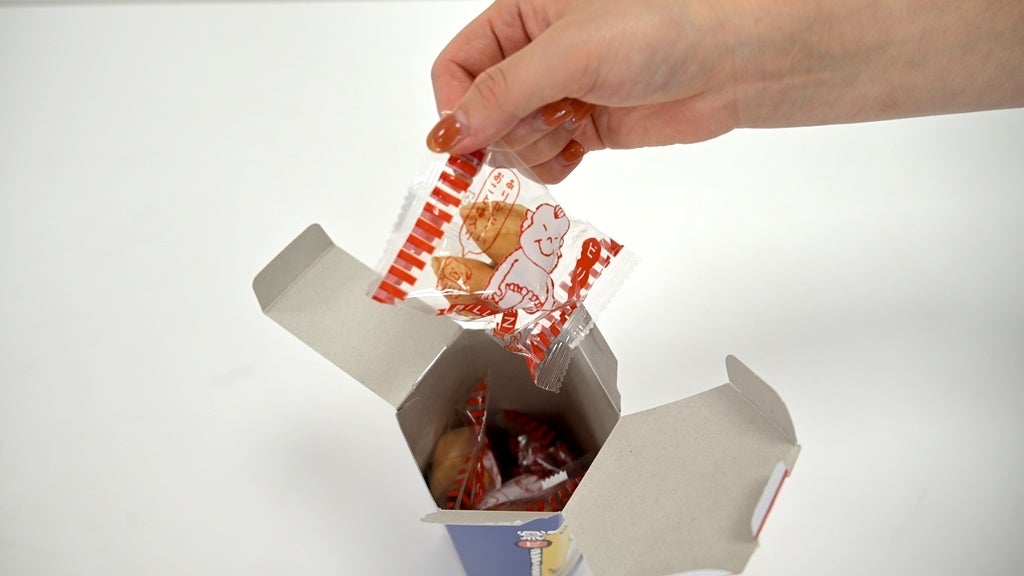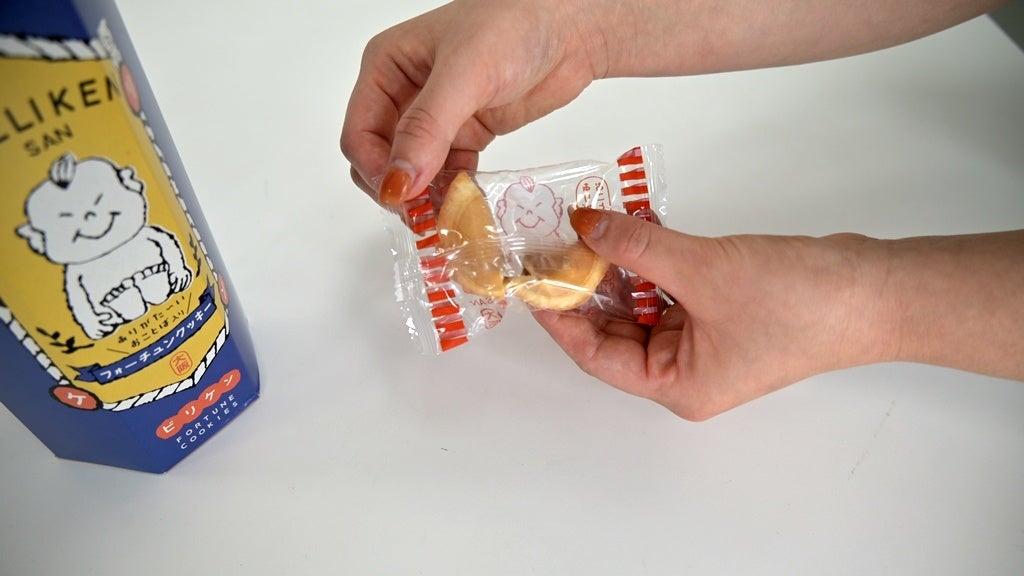③袋を開け、クッキーとビリケンさんのメッセージを取り出します。