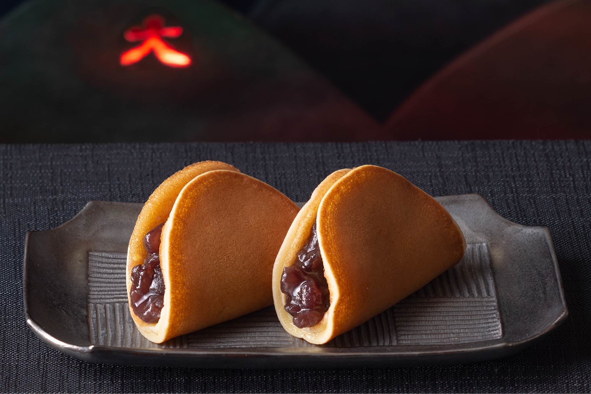 もっちり、しっとり。もち粉を使用した独特の食感が美味しい焼皮に、吟味した小豆を丁寧に炊き上げた小倉あんを包んだ焼菓子を「五山の送り火」の明々とした意匠の包み紙で装いました。