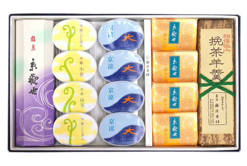銘菓「京観世」や、夏限定の「京観世オレンジ」、格調高い竹皮包みの羊羹を含む重厚なお詰合せもご用意しております。