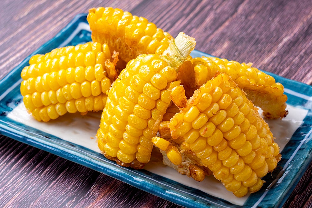 ■こだわり:とうきびを揚げると甘みと旨味がギュッと凝縮!揚げたてのとうきびに、知床らうすの海洋深層水の塩をふりかけ、口いっぱいにとうきびと北海道の大地の美味しさを感じられる一品。