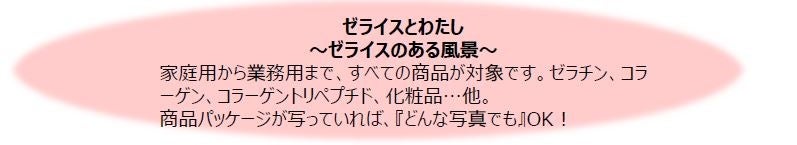 ゼラチンを使ったお料理や美容のためのコラーゲン、健康のための「ひざ年齢」、かわいいペットと一緒に、などなど幅広く募集しています。商品パッケージと一緒に、テーマに沿って撮影した写真を投稿してください。おいしそうなお料理の写真はもちろん、あなたや大切な方が一緒に写っている写真、写真に込めた思いやストーリーを添えていただくことも大歓迎です。