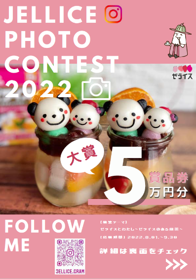 この機会にゼライス商品を使用したお菓子やお料理を通して、さらにゼライスのファンになっていただきたいとの想いから、2022年8月1日から9月30日までの期間、『ゼライス フォトコンテスト 2022』を開催し、ゼライス商品でスイーツや料理を作った写真を募集いたします。