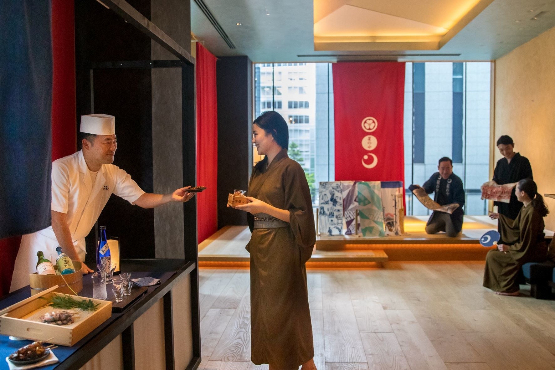 「お江戸楽市」では、「東京・夏夜の宴」をさらに盛り上げるため、江戸時代に発展した文化にルーツがあり、今もなお、こだわりを持ちながら商いを続けている和菓子店や料理店、工芸店など、日によって異なる老舗が星のや東京に集まります。宿泊者は、オリジナルメニューの振る舞いや伝統工芸体験、そして店主や職人との交流など、長い時間守り続けてきたお店の文化や伝統、こだわりを学べます。