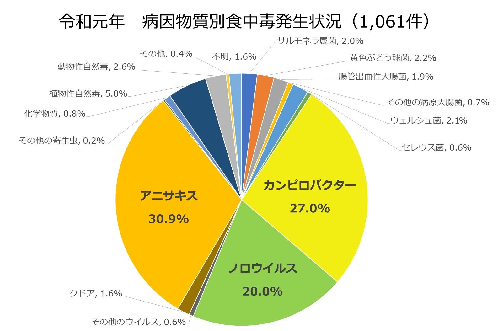 被害発生数も、令和元年では第1位となっており、発生した食中毒被害のうち3割を占めています。
