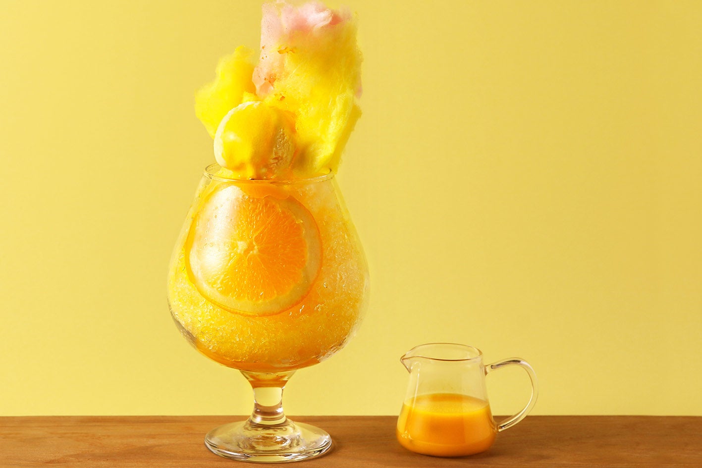 鮮やかな黄色が目を引くマンゴーのかき氷は、フローズンマンゴーとオレンジでトロピカルな味わいに仕上げました。甘酸っぱいパッションフルーツソースをかけて味の変化をお楽しみください。
