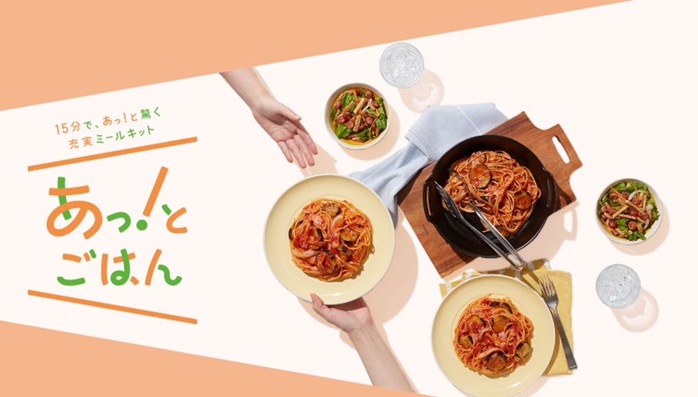 「あっ!と ごはん」は、全メニュー、主菜と副菜の2品が15分以内※3で完成できるという『時短』に特化した商品です。