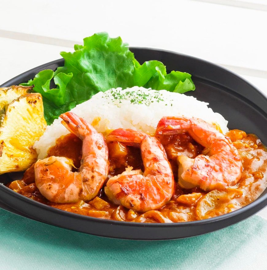 夏らしいパイナップルを加えたカレーに人気のガーリックシュリンプをトッピング!