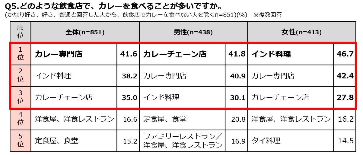 ・カレーを食べる店は「カレー専門店」「インド料理」「カレーチェーン」がTOP3。