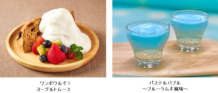 たったの3分で超簡単にパンケーキ用の“ヨーグルトムース”やゼリー用の“パステルカラー泡”を作るができ、