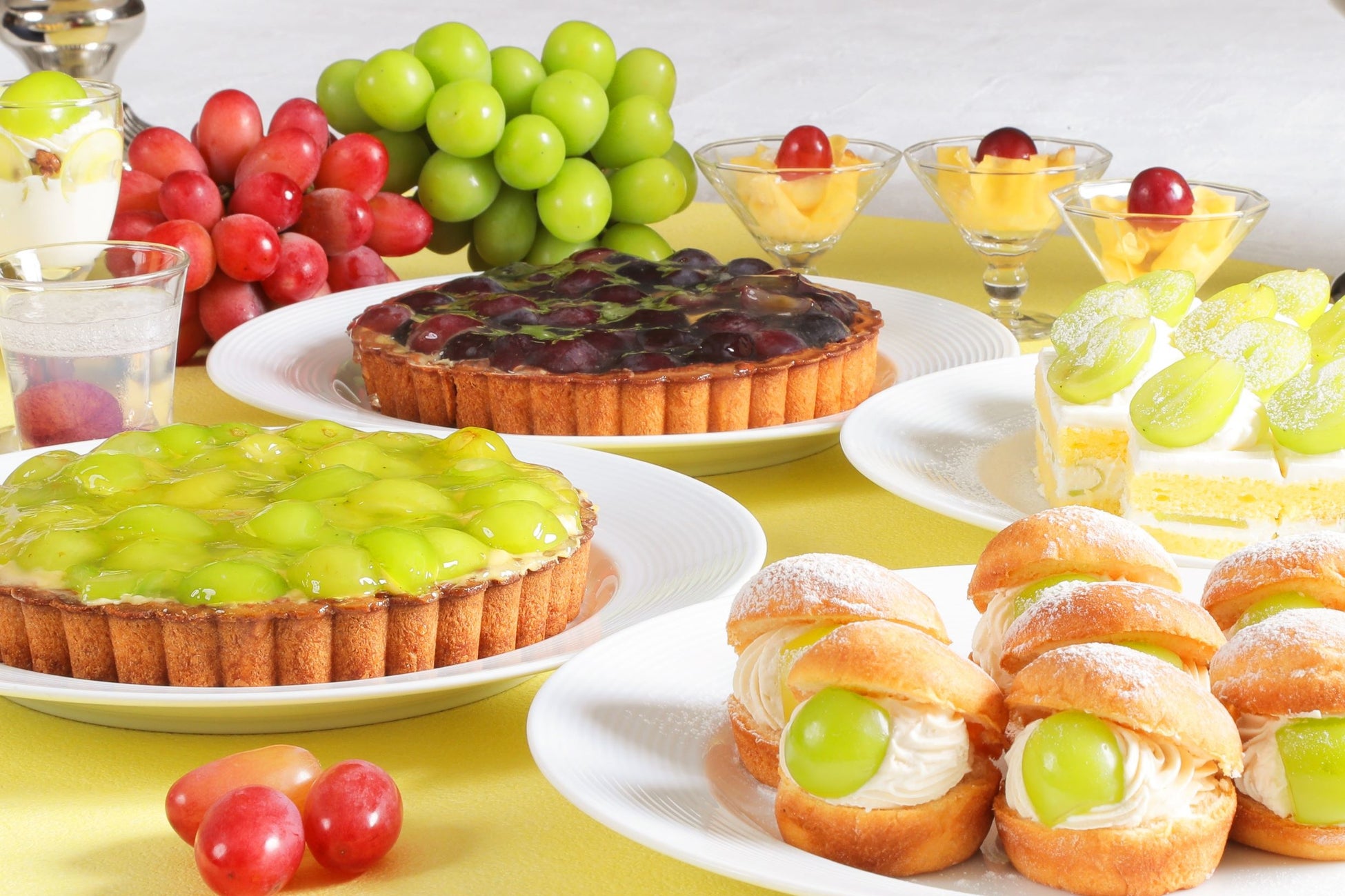 この時期が旬な島根県産「神紅(しんく)」、「シャインマスカット」、「ピオーネ」、「巨峰」の4種類のぶどうを一度に堪能できるスイーツフェアです。