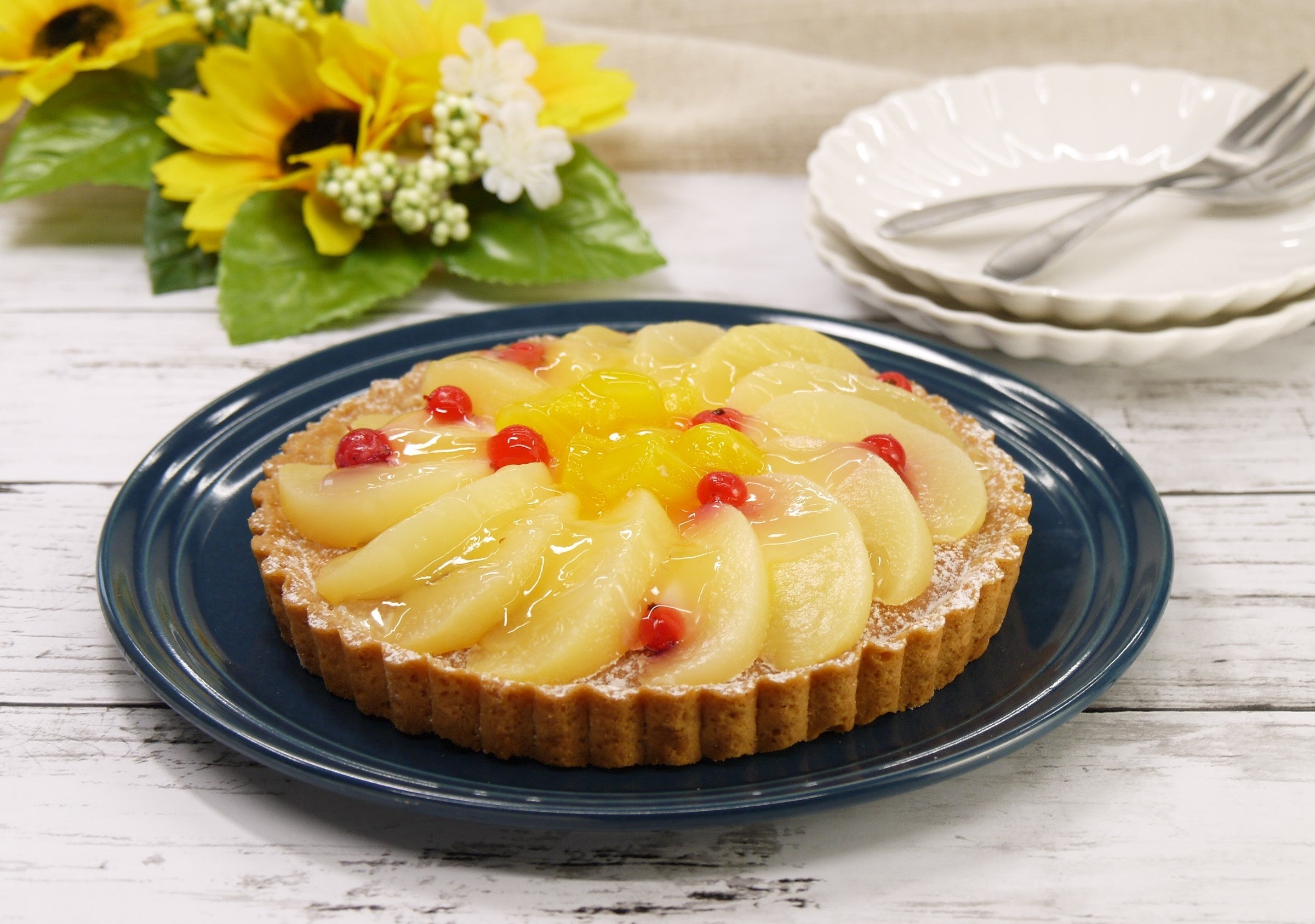 ■贅沢国産白桃果肉の花びらタルト