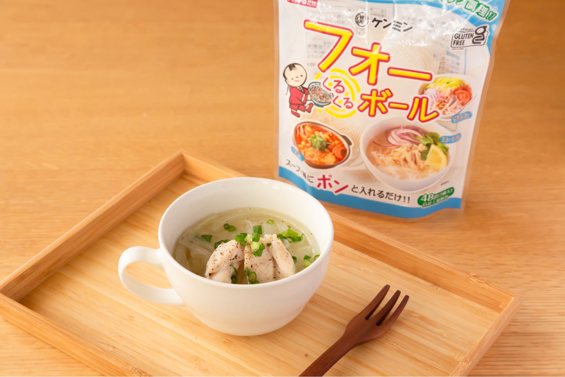 いつものお鍋やスープに入れるだけで、茹で戻し不要で簡単・便利にグルテンフリー料理が楽しめるお鍋用フォー。小さな玉状で必要な分だけスープや熱湯を注ぎ、約3分30秒で出来上がります。
