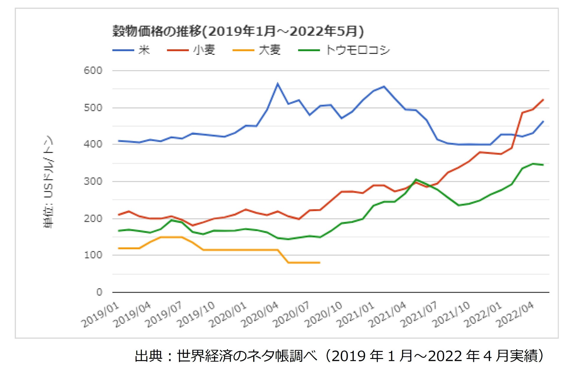 ロシアのウクライナ侵攻により、両国の輸出量が世界の3割を占める小麦の価格が、急激に高騰し、米の価格との逆転が発生しました。