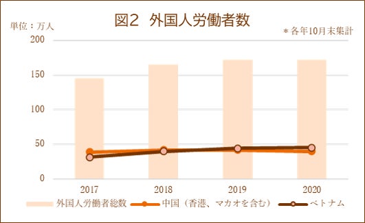 増加が始まった要因として、2009年10月1日に締約された「日本・ベトナム経済連携協定(EPA)」と、技能実習制度の開始があげられます。