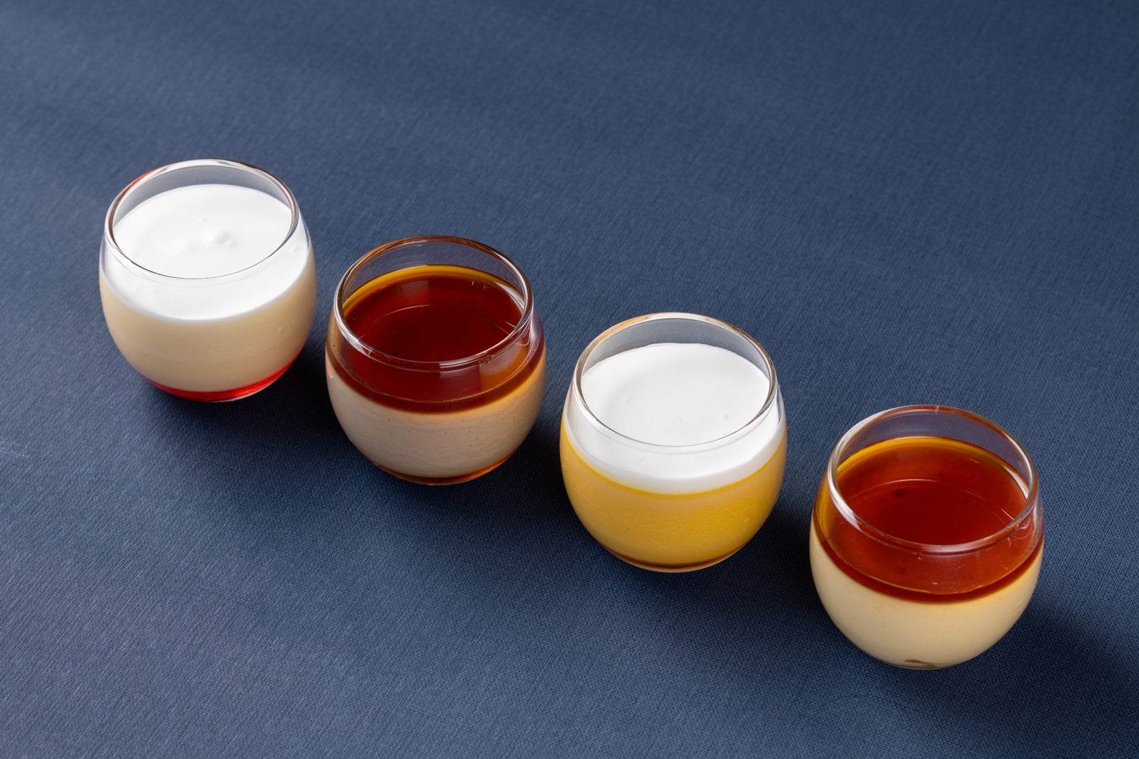 毎年夏のスイーツとしてご好評いただいているグラススイーツ“ベリーヌ”の秋バージョンです。今年はさまざまな味わいを少しずつお楽しみいただけるよう、小さなサイズ4種類を詰め合わせて販売いたします。ほろ苦いキャラメルソースを合わせた栗のプリンと洋梨のプリン、生クリームを合わせた濃厚なかぼちゃのプリン、「フィオレンティーナ ペストリーブティック」で定番のキャラメルプリンのセットです。