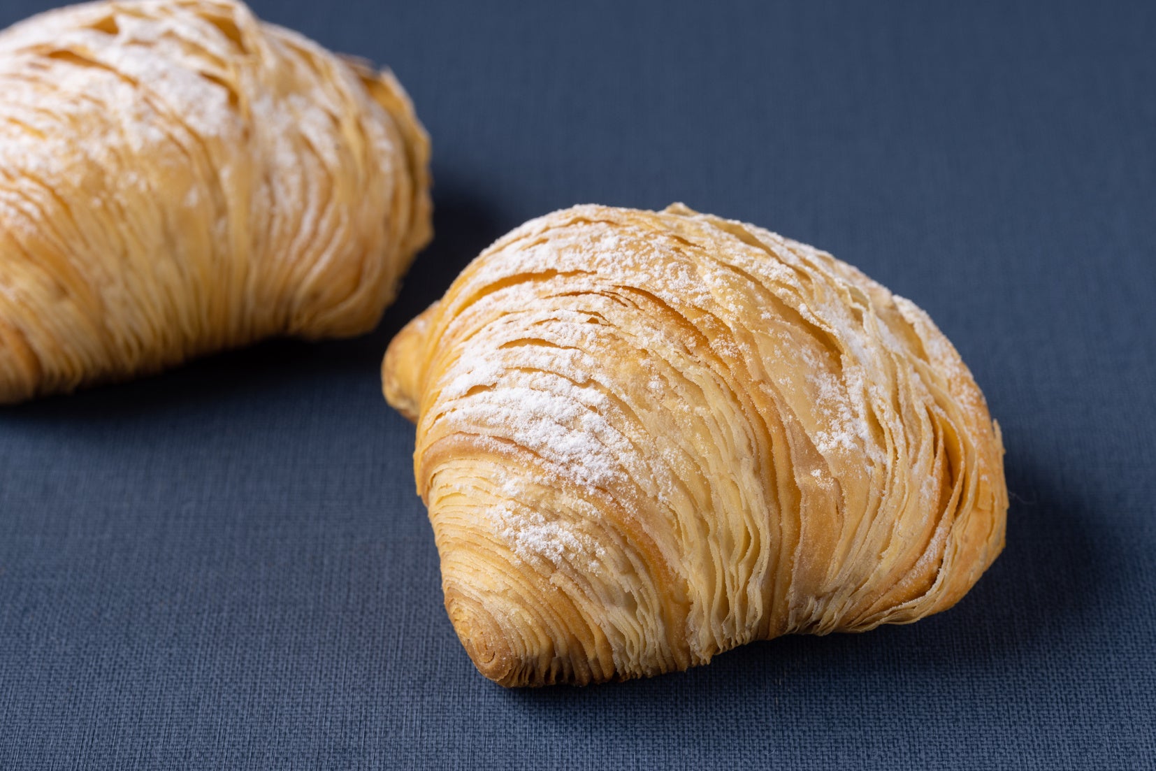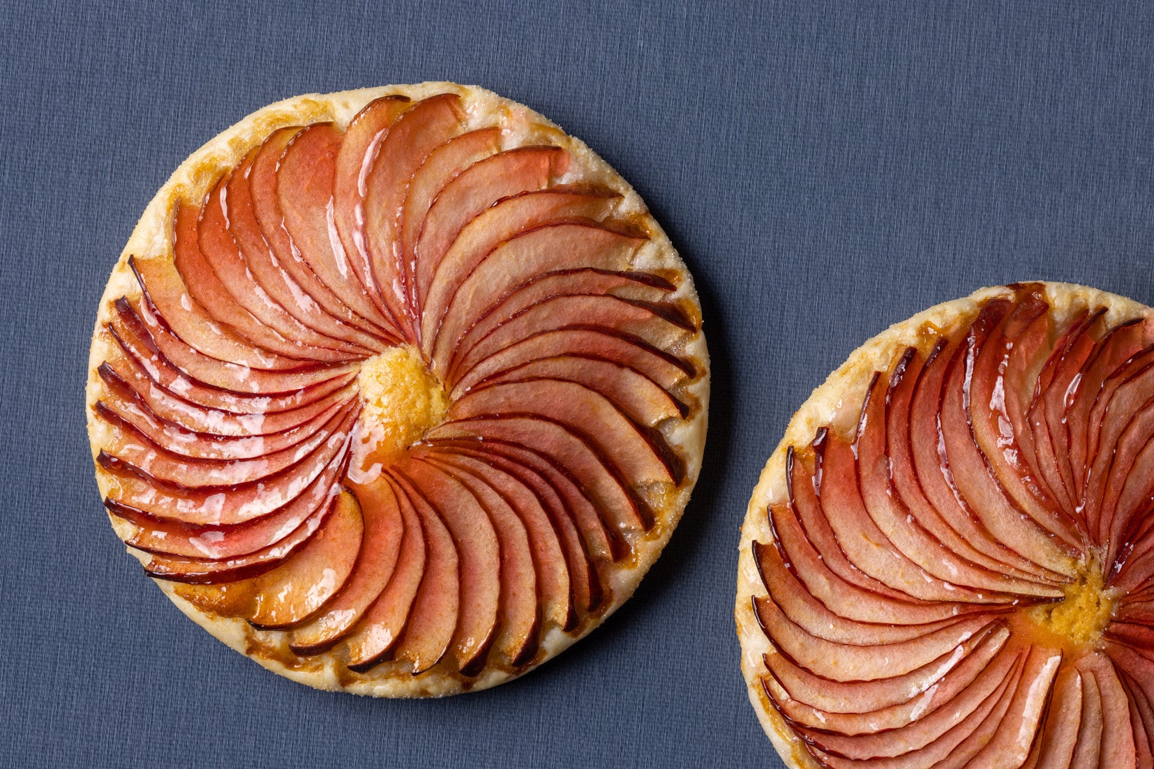 薄くのばしたパイ生地にアーモンドクリームをのせ、薄くスライスした幾重ものりんごを花びらのように広げて焼き上げた新作スイーツです。サクサクで香ばしいパイ生地と程よい甘さのクリーム、甘酸っぱいりんごの味わいが口の中に広がります。