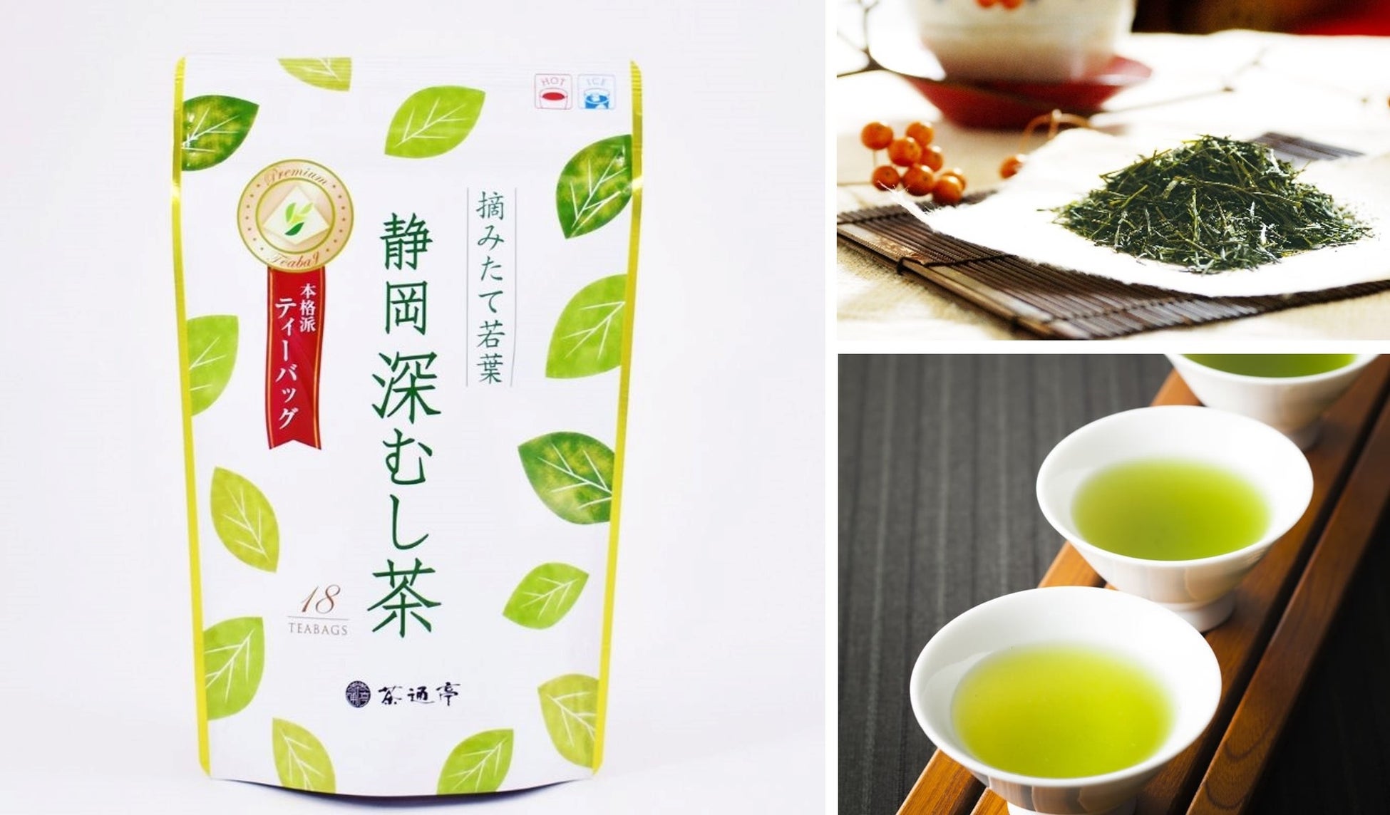 「日本茶の本当の美味しさを伝え続ける」を理念とし、お茶づくりに全力を注いで100余年となる会社です。静岡茶通亭は、日本人の心の誇りであり続ける「美味しい茶づくり」に励んでいます。また、日本全国の選ばれし茶農家と契約を結び、土造りはもとより、農薬の使用基準、肥料の選定、茶葉の摘採基準を定め、各生産農家ごとの生産管理記録を保管、追跡調査ができるように整備されています。茶の達人たちとの共演が織りなすお味を、是非お試しください。