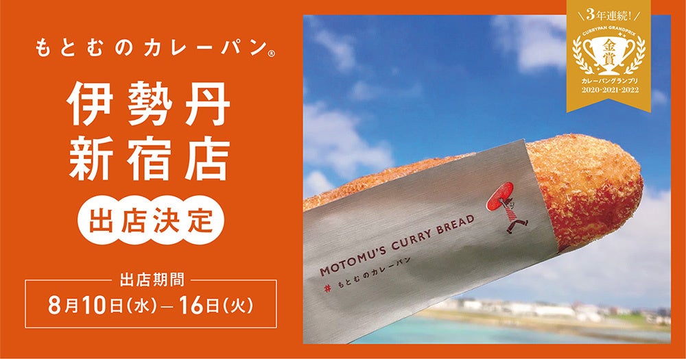 ブランディングカンパニーである株式会社アンド・フォース (本社:東京都千代田区麹町、代表取締役 瀧口 幸明)が手掛ける、沖縄初のカレーパングランプリ3年連続金賞受賞の焼きたてカレーパン専門店「もとむのカレーパン」は、2022年8月10日(水)〜8月16日(火)の7日間限定で、伊勢丹新宿店が主催する「おいし、うれし、フェス縁日」に出店が決定しました。