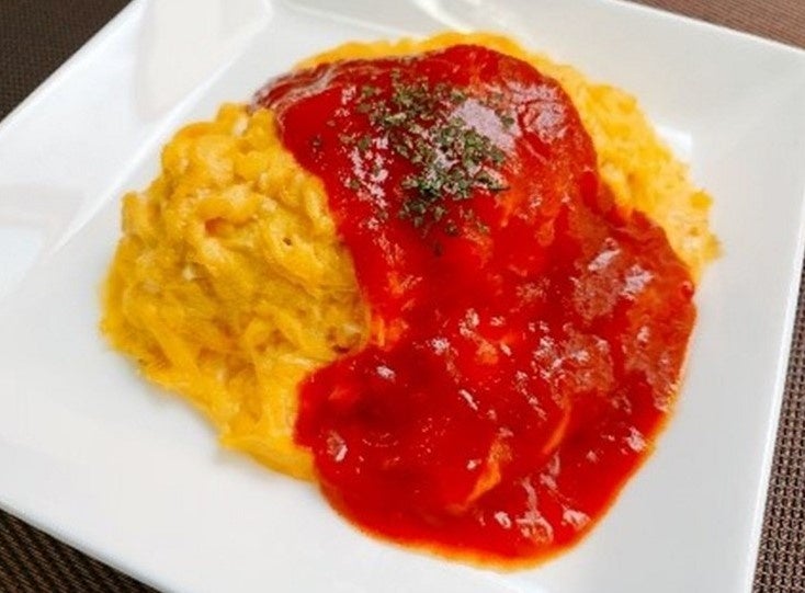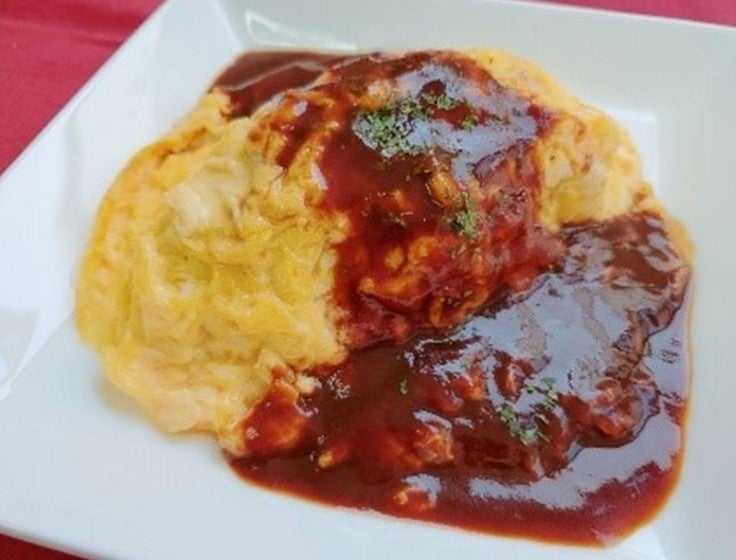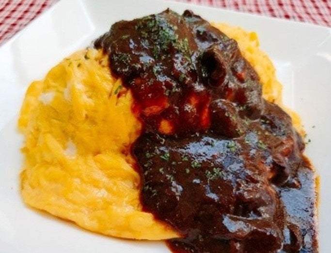 清水屋ケチャップや鶏肉を使用したケチャップライスが人気の<横濱洋食キッチンS>のオムライスに、<洋食や 三代目たいめいけん>茂木氏が監修したソースをかけた限定メニュー。通常、約250gのオムライスですが、今回は380gとボリュームアップ。お腹も大満足の一品です。